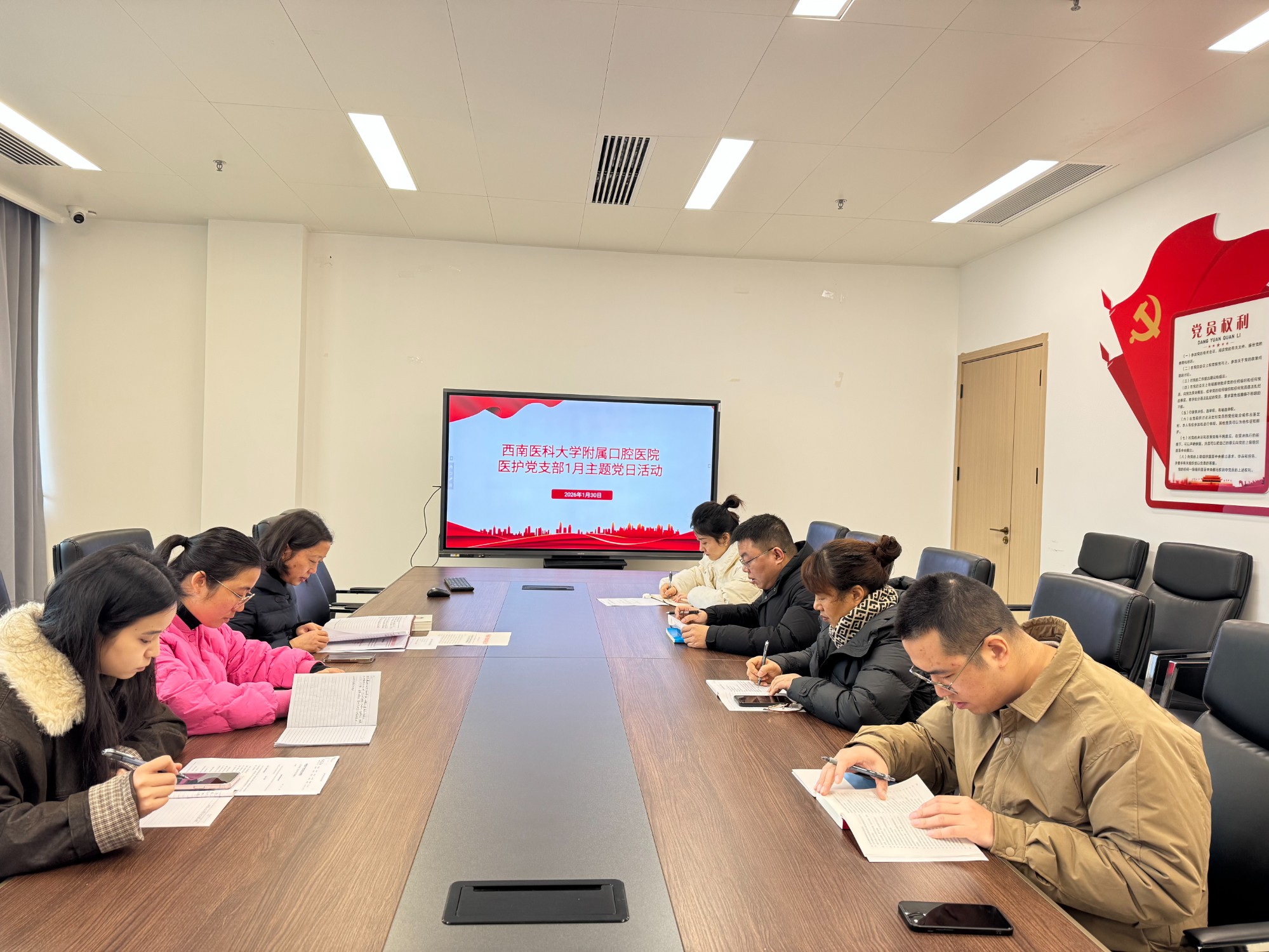 此外,支部党员还认真学习了医院《关于党支部设置优化调整的通知》(西南医大口委【2026】3号)文件精神。