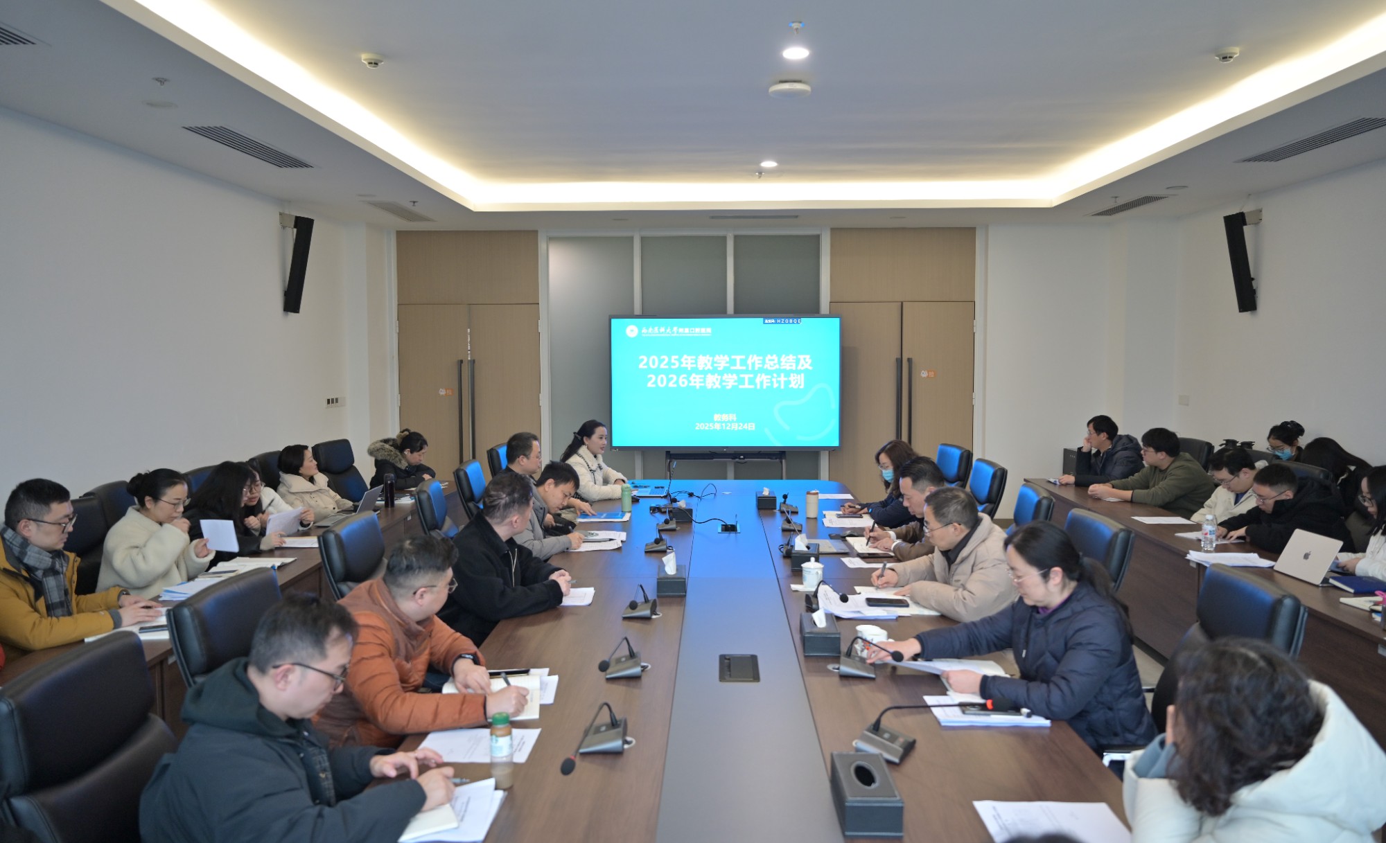 最后,党委书记唐柯作总结讲话。他充分肯定学院2025年教育教学工作取得的可喜成绩,强调2025年是学院教学工作攻坚克难、多点突破的一年,成果值得高度认可。随后,结合“十四五”收官、“十五五”开局的关键节点,他提出三点要求:一是认清形势、明确方向,分清工作重点,主动向学校标杆学习、向先进领域借鉴,着力补足发展短板;二是用心用情、精准发力,高质量推进2026年各项教学工作,在课程思政建设、考风考纪强化、学术年会承办及院庆筹备等重点任务上实现新突破、展现新作为;三是强化担当、守正创新,以高度政治责任感和历史使命感,推动教学工作与学科建设深度融合,为学院高水平发展注入强劲动力。