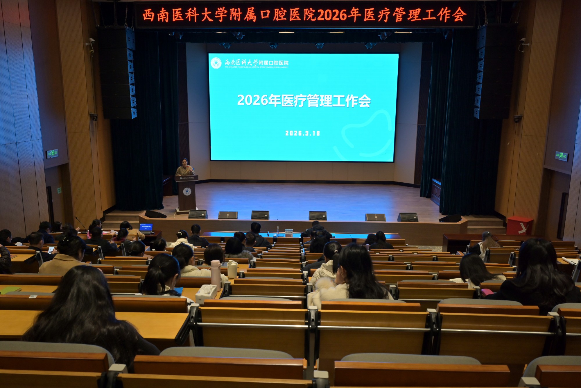 为深入贯彻落实国家、省、市卫生健康工作决策部署,坚持以人民口腔健康为中心,持续提升医疗质量与安全管理水平,加速推进医院高质量发展,3月18日下午,我院在院本部学术报告厅召开2026年医疗管理工作会议。医院全体在家院领导出席会议,医疗质量与安全管理委员会成员、月度工作例会成员及临床科秘书参加会议。